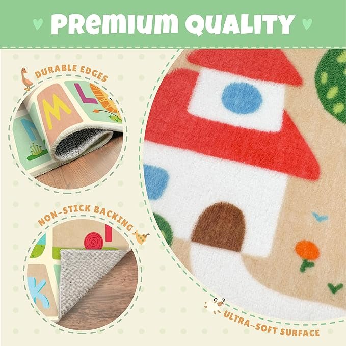 Washable Kids Playroom Rug – 5×7 Play Rug for Preschool Toddlers, Baby Girls