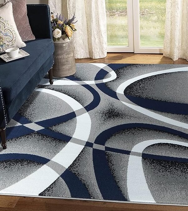 Area Rug 5x7 Navy Door Mat Modern Swirls Carpet Bedroom Living Room