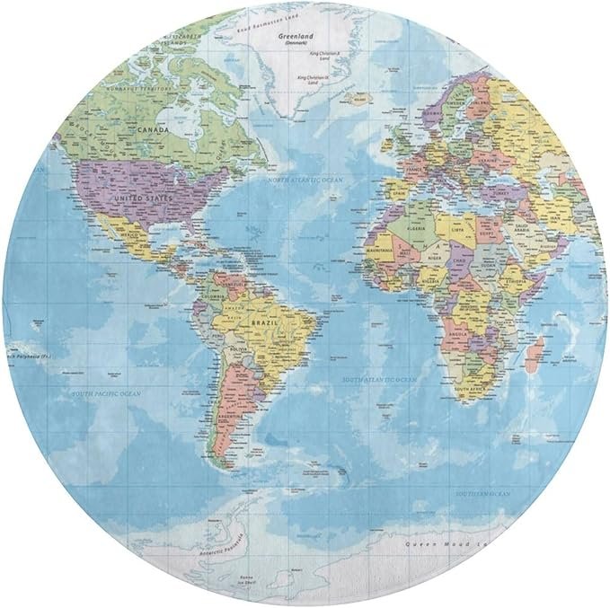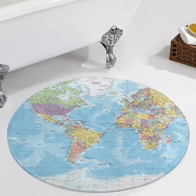 World Map Round Rug,4×4 Circle Area Rug